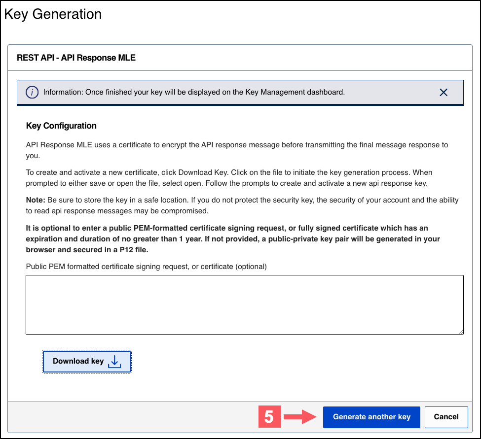 - To create a new API response MLE certificate, clickDownload key